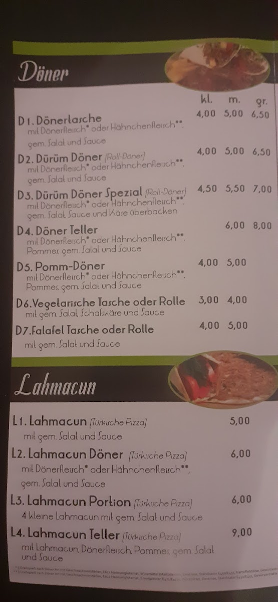 Ümit Döner Menu